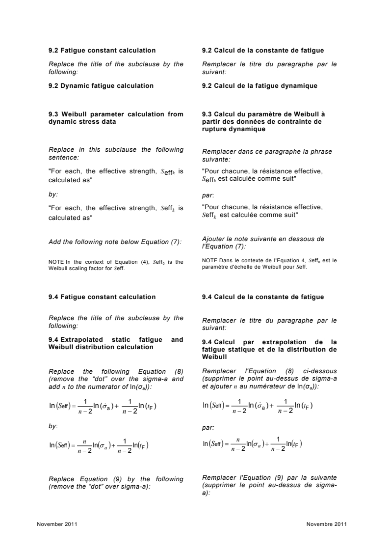 9.2 Dynamic fatigue calculation 9.2 Calcul de la fatigue dynamique