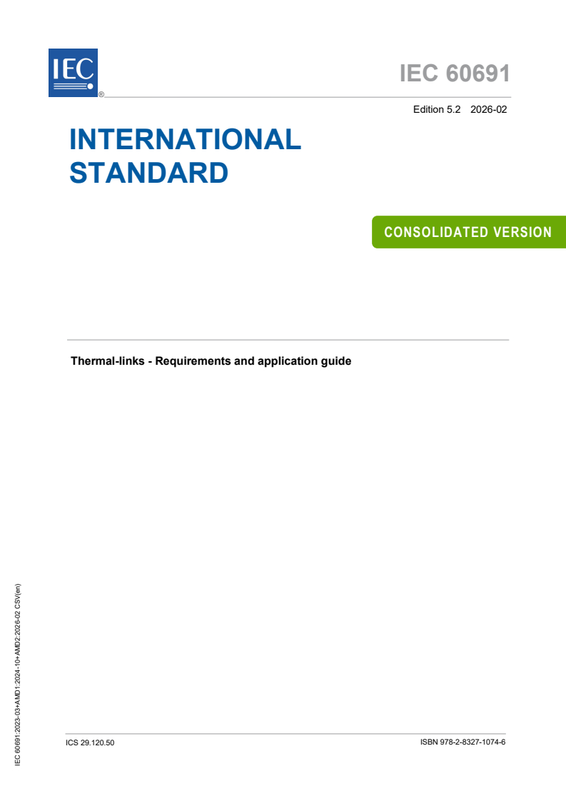 IEC 60691:2023+AMD1:2024+AMD2:2026 CSV - Thermal-links - Requirements and application guide Released:2/9/2026 Isbn:9782832710746
