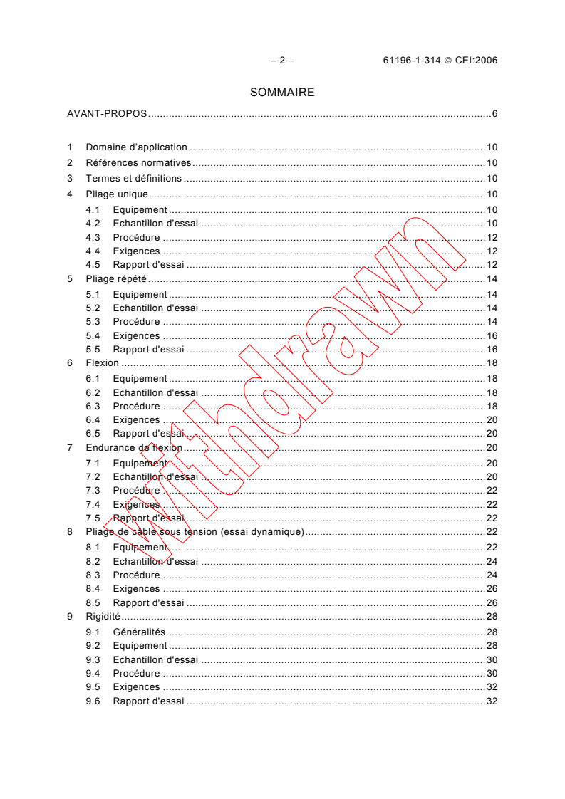 Each test protocol is clearly defined with specific requirements for equipment, test samples, procedures, acceptance criteria, and reporting. By standardizing these methods, IEC 61196-1-314 ensures consistent evaluation and quality control of coaxial cable mechanical performance related to bending.