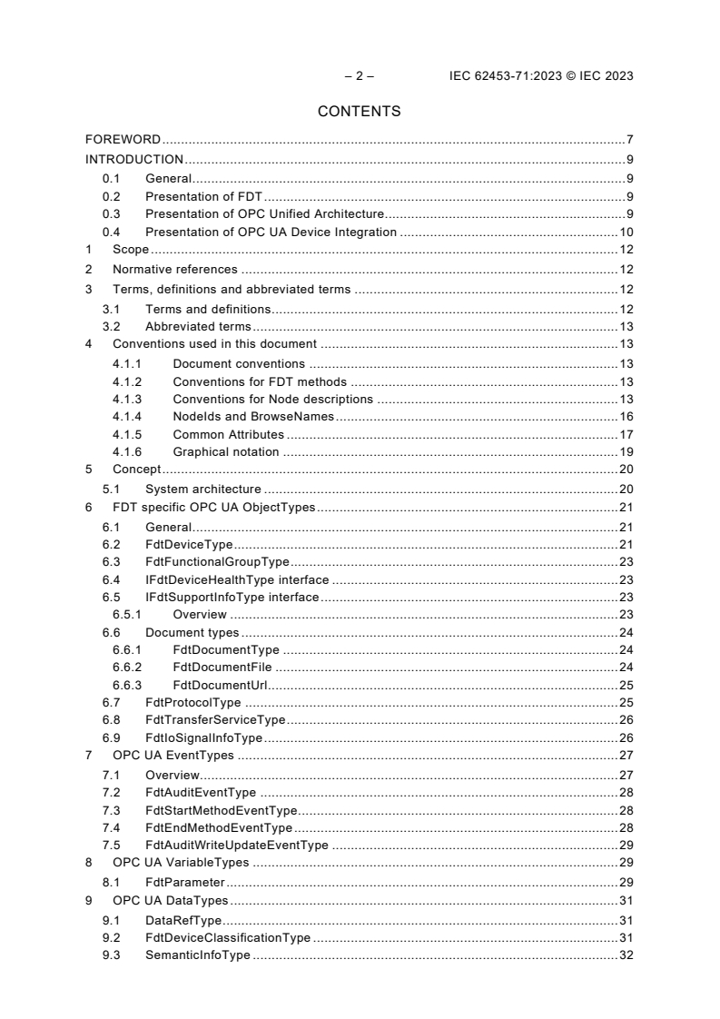 IEC 62453-71:2023 specifies an OPC UA Information Model to represent the device information based on FDT-defined device integration.