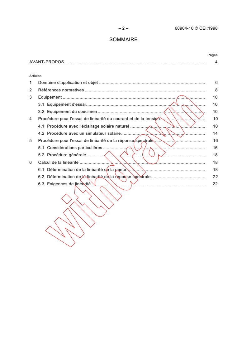 IEC 60904-10:1998, titled "Photovoltaic Devices - Part 10: Methods of Linearity Measurement," is an international standard developed by the International Electrotechnical Commission (IEC). This standard provides detailed procedures to determine the degree of linearity of various photovoltaic (PV) device parameters concerning specific test parameters such as irradiance and temperature. It is primarily intended for use by calibration laboratories, PV module manufacturers, and system designers to ensure the accurate performance evaluation and reliable operation of PV devices.