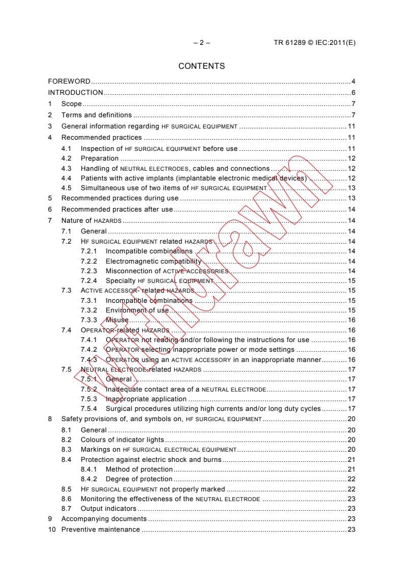 Overview - IEC TR 61289:2011 (High frequency surgical equipment - Operation and maintenance)