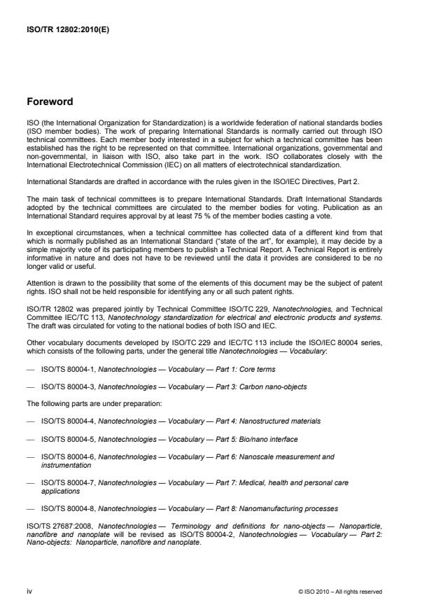ISO TR 12802:2010 - Nanotechnologies - Model taxonomic framework for use in developing vocabularies - Core concepts Released:11/15/2010
