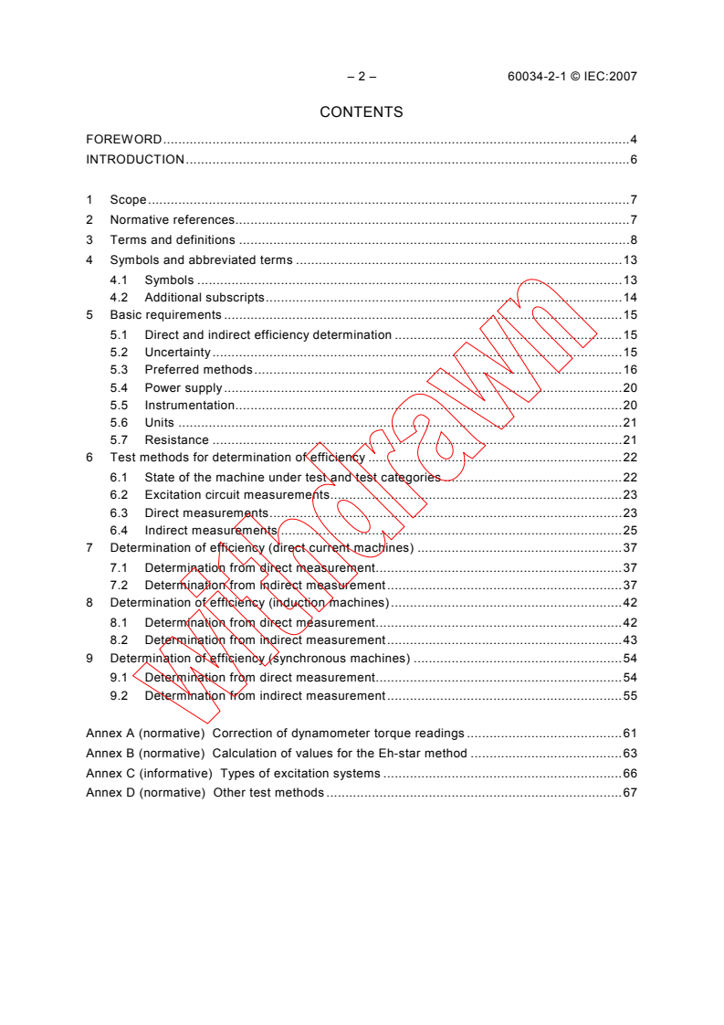 IEC 60034-2-1:2007 is an international standard published by the International Electrotechnical Commission (IEC) that defines standard methods for determining losses and efficiency in rotating electrical machines through testing. This part of the IEC 60034 series focuses on machines within the scope of IEC 60034-1, including direct current (d.c.) machines, alternating current (a.c.) synchronous machines, and induction machines of all sizes. It explicitly excludes machines used for traction vehicles.