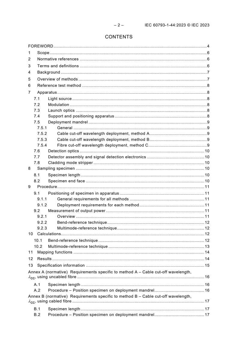 Keywords: IEC 60793-1-44:2023, cut-off wavelength, optical fibres, single-mode, measurement methods.