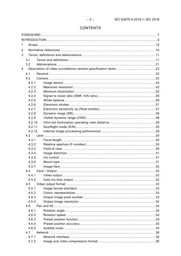 IEC 62676-5:2018 is a standard published by the International Electrotechnical Commission (IEC). Its full title is "Video surveillance systems for use in security applications - Part 5: Data specifications and image quality performance for camera devices". This standard covers: IEC 62676-5:2018 defines recommendations and requirements for representation and measuring methods of performance values to be described in materials such as instruction manuals, brochures and specifications of video surveillance camera equipment. The first part of this document defines requirements for description of video surveillance camera specification items. The second part defines requirements for measurement methods of video surveillance camera specification items.