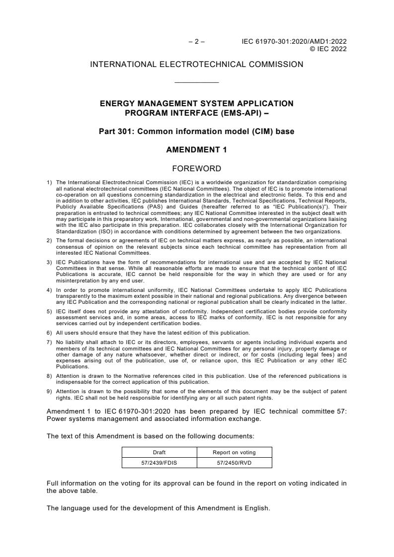 – 2 – IEC 61970-301:2020/AMD1:2022