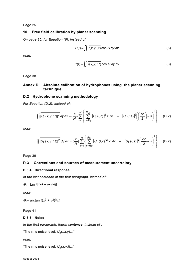 Corrigendum 1 - Ultrasonics - Hydrophones - Part 2: Calibration for ultrasonic fields up to 40 MHz