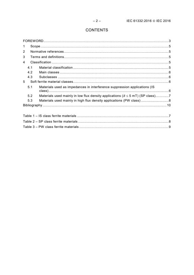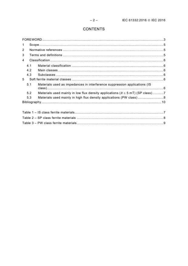 IEC 61332:2016 specifies classification rules for soft ferrite materials used in inductive components (inductors and transformers) fulfilling the requirements of the electronic industries. This document addresses the following issues for ferrite suppliers and users: - cross-reference between materials from multiple suppliers; - assistance to customers in understanding the published technical data in catalogues when comparing multiple suppliers; - guidance to customers in selecting the most applicable material for each application; - setting of nomenclature for IEC standards relating to ferrite; - establishing uniform benchmarks for suppliers for performance in new development of materials. This edition includes the following significant technical changes with respect to the previous edition: a) deleted "c" rank from subclass from Table 3, because of too large power loss density; b) added "a-wide" rank in subclasses PW3, PW4 and PW5 in Table 3; c) changed "B" of PW3 class from 100 mT to 200 mT; "B x f" and "power loss density" have also been changed; d) changed "B" of PW4 class from 50 mT to 100 mT; "B x f" and "power loss density" have also been changed.
