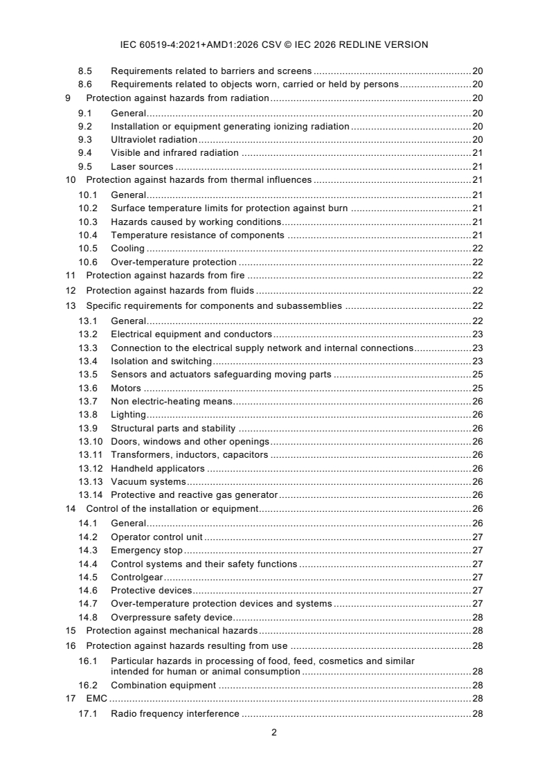 - the structure has been redrafted according to IEC 60519-1:2020;