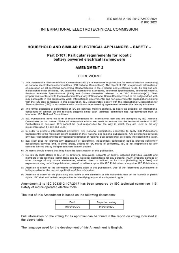 (Amendment)Amendment 2 - Household and similar electrical appliances - Safety - Part 2-107: Particular requirements for robotic battery powered electrical lawnmowers