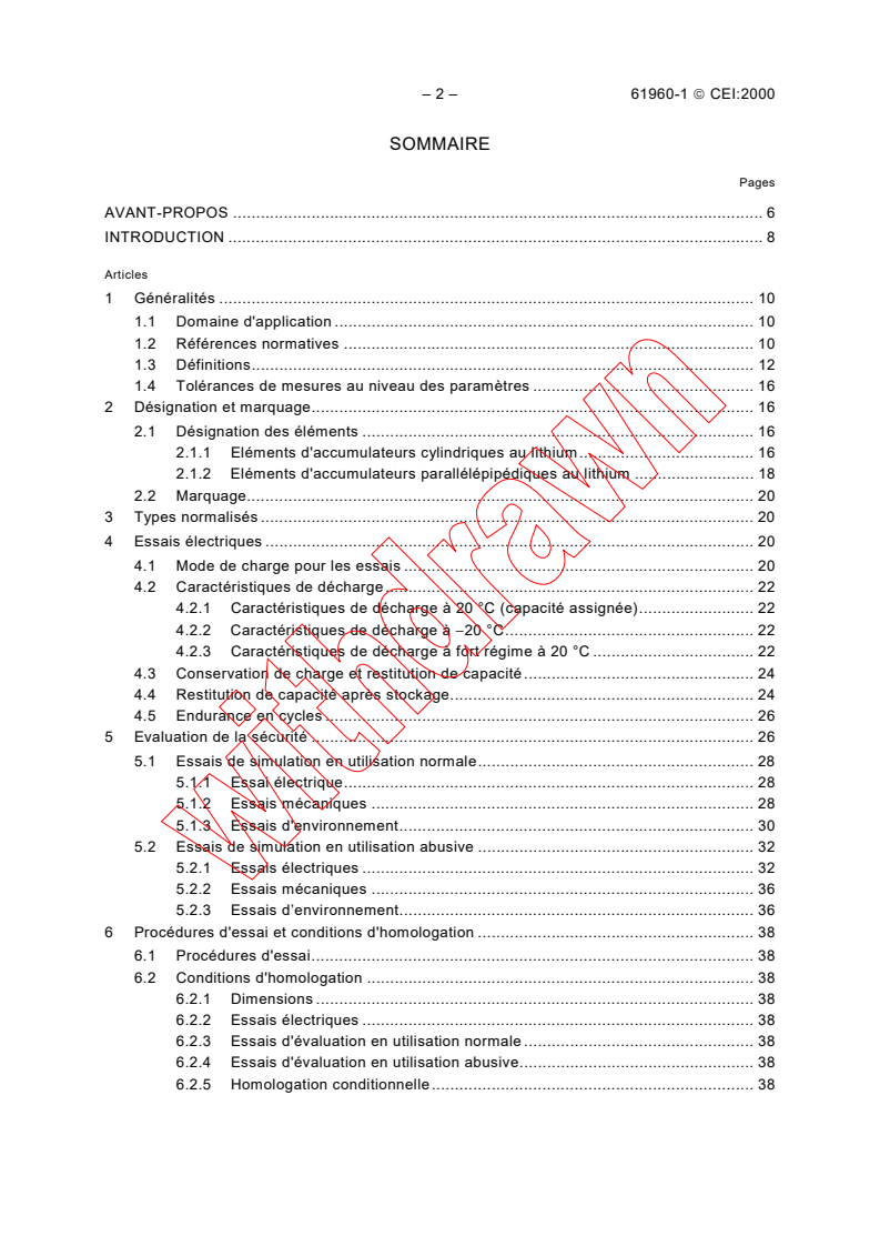 Eléments et batteries d'accumulateurs au lithium pour applications portables - Partie 1: Eléments d'accumulateurs au lithium