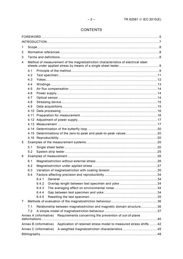 IEC TR 62581:2010 is a technical report published by the International Electrotechnical Commission (IEC). Its full title is "Electrical steel - Methods of measurement of the magnetostriction characteristics by means of single sheet and Epstein test specimens". This standard covers: IEC/TR 62581:2010(E) describes the general principles and technical details of the measurement of the magnetostriction of single sheet specimens preferably 500 mm long and 100 mm wide and Epstein strip specimens, specified in IEC 60404-2, of electrical steel by means of optical sensors and accelerometers. These methods are applicable to test specimens obtained from electrical steel sheets and strips of any grade. The characteristics of magnetostriction are determined for a sinusoidal induced voltage, for specified peak values of magnetic polarization and for a specified frequency. The measurements are made at an ambient temperature of 23 °C +/- 5 °C on test specimens which have first been demagnetized.