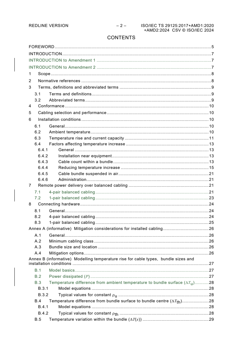 ISO/IEC TS 29125:2017+AMD1:2020+AMD2:2024 CSV - Information technology - Telecommunications cabling requirements for remote powering of terminal equipment Released:10/25/2024