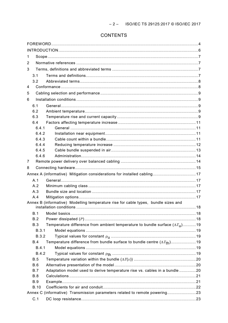 Keywords: ISO/IEC TS 29125, remote powering, telecommunications cabling, balanced cabling, 4‑pair, 1‑pair, temperature rise, DC loop resistance, ISO/IEC 11801.