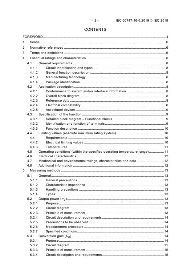 IEC 6074716-6:2019 specifies the terminology, essential ratings and characteristics, and measuring methods of microwave integrated circuit frequency multipliers.