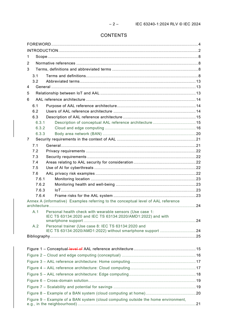 Keywords: IEC 63240-1:2024, AAL reference architecture, active assisted living, BAN, edge computing, cloud computing, security, privacy, usability, accessibility, AI ethics.