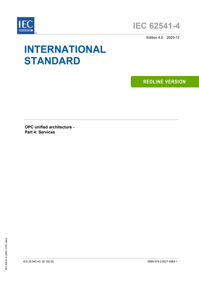 REDLINE IEC 62541-4:2025 RLV - OPC unified architecture - Part 4: Services Released:12/16/2025 Isbn:9782832709641