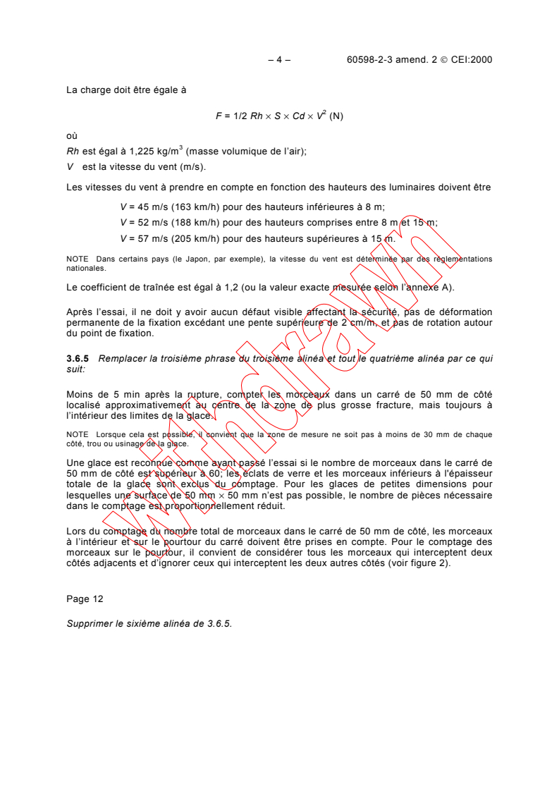 Amendment clarifies procedures for assessing the integrity of glass components in luminaires after fracture:- Counting particle fragments in a 50 mm square area centered on the fracture zone.