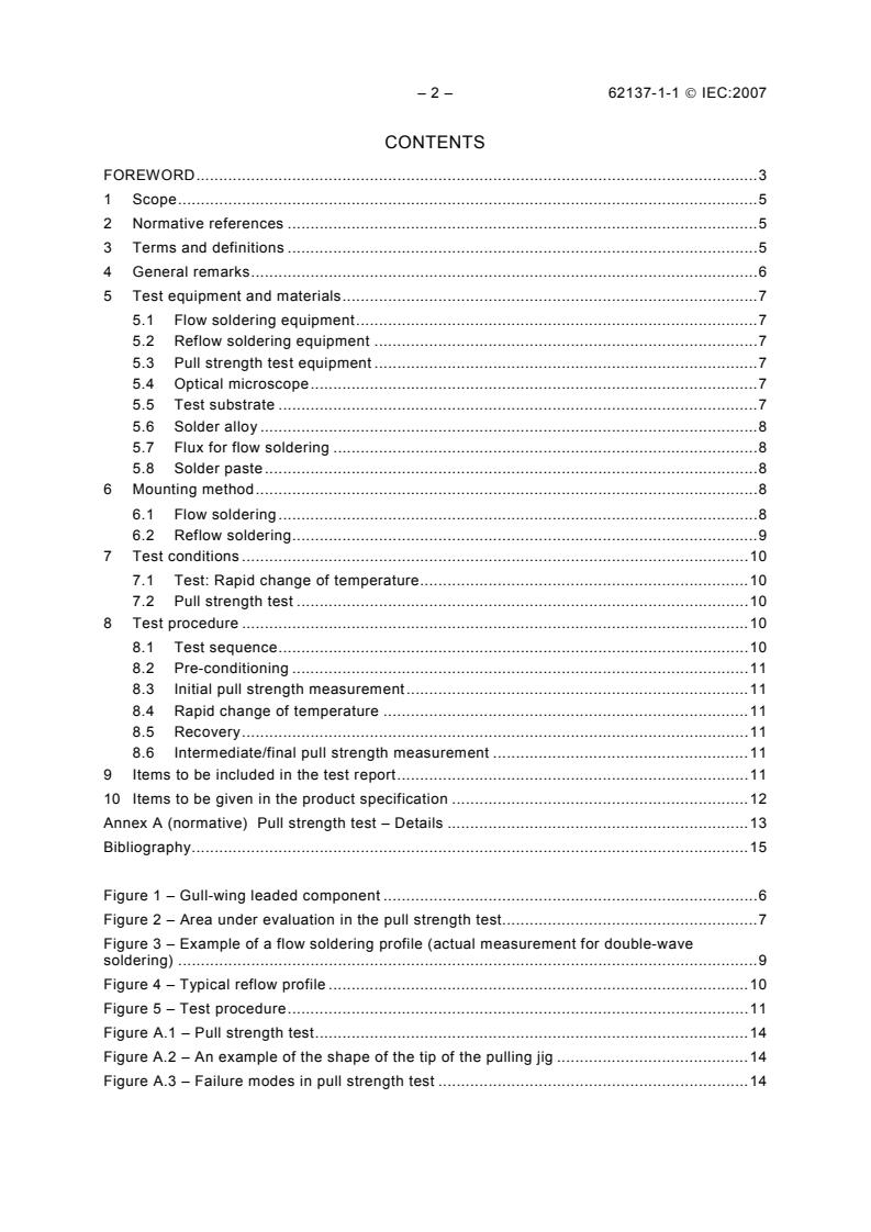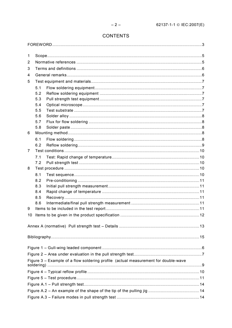 Keywords: IEC 62137-1-1:2007, pull strength test, gull‑wing lead, surface mounting technology, solder joint, temperature cycling, reflow soldering, flow soldering, lead‑free solder, printed wiring board.