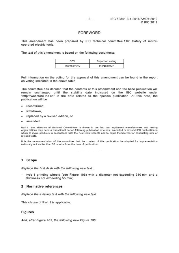 IEC 62841-3-4:2016/AMD1:2019 - Amendment 1 - Electric motor-operated hand-held tools, transportable tools and lawn and garden machinery - Safety - Part 3-4: Particular requirements for transportable bench grinders Released:7/2/2019 Isbn:9782832268063