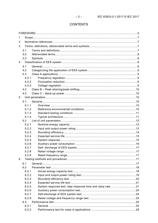 IEC 62933-2-1:2017 focuses on unit parameters and testing methods of EES systems. The energy storage devices and technologies are outside the scope of this document. This document deals with EES system performance defining: