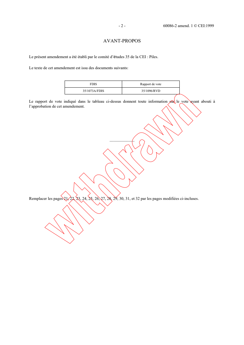 Le présent amendement a été établi par le comité d’études 35 de la CEI : Piles.