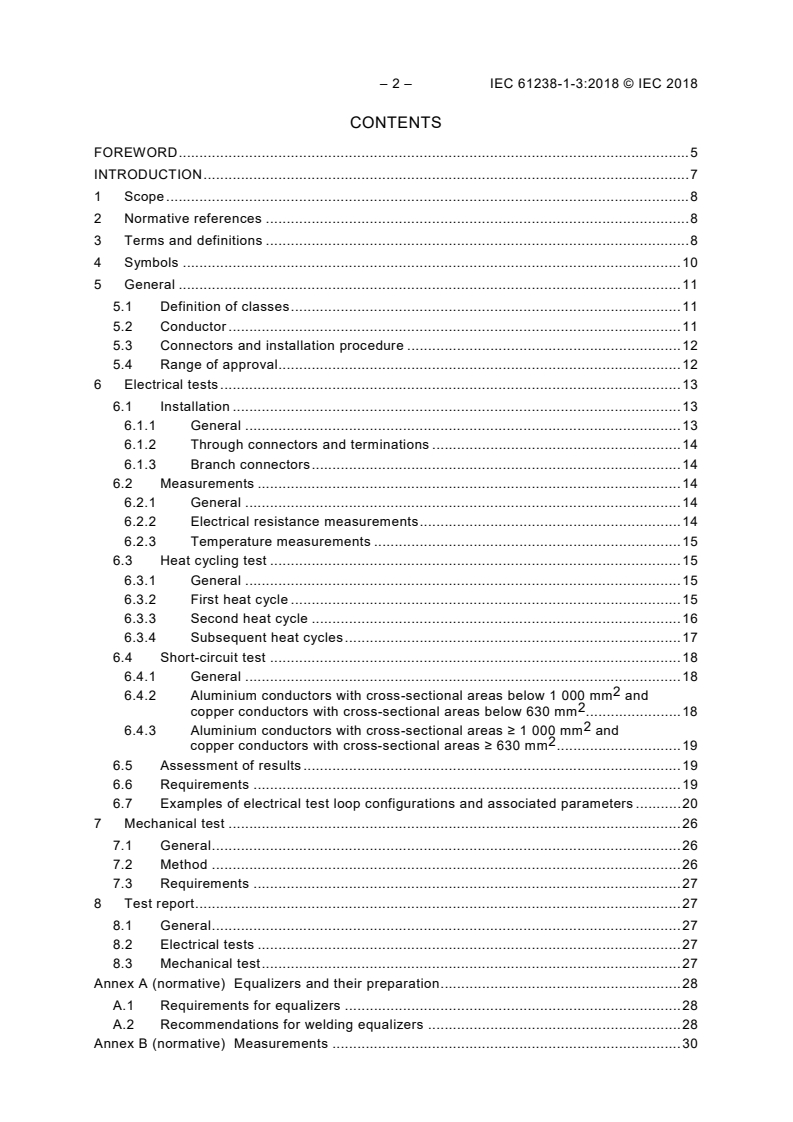 IEC 61238-1-3:2018 applies to compression and mechanical connectors for power cables for rated voltages above 1 kV (Um = 1,2 kV) up to 30 kV (Um = 36 kV), for example buried cables or cables installed in buildings, having