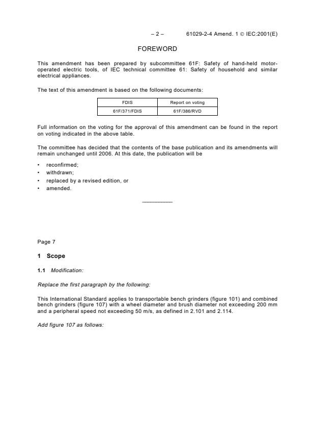 Amendment 1 - Safety of transportable motor-operated electric tools - Part 2-4: Particular requirements for bench grinders