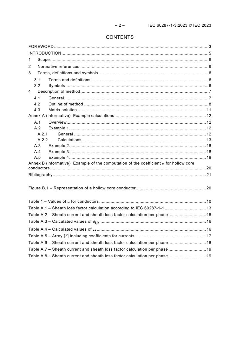 - Computes sheath loss factor (λ′) and circulating current losses per sheath; includes examples, tables (e.g., coefficients α for hollow core conductors) and informative annexes.