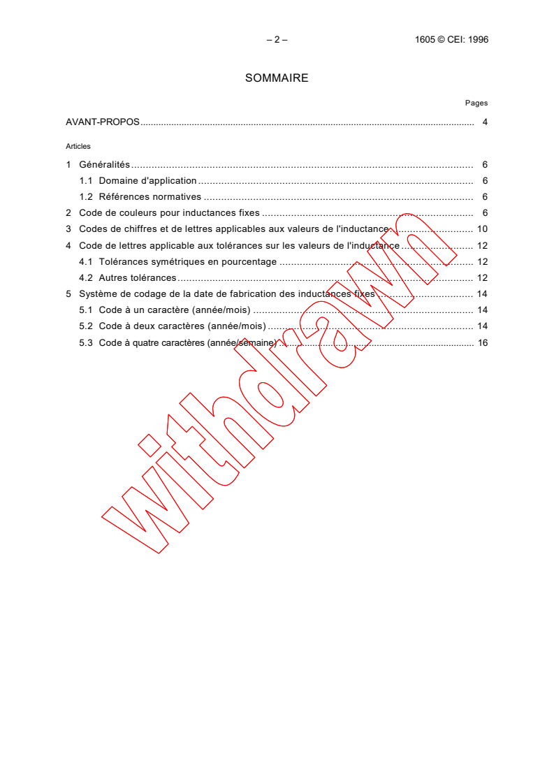 IEC 61605:1996 is a standard published by the International Electrotechnical Commission (IEC). Its full title is "Fixed inductors for use in electronic and telecommunication equipment - Marking codes". This standard covers: Specifies marking codes for fixed inductors.