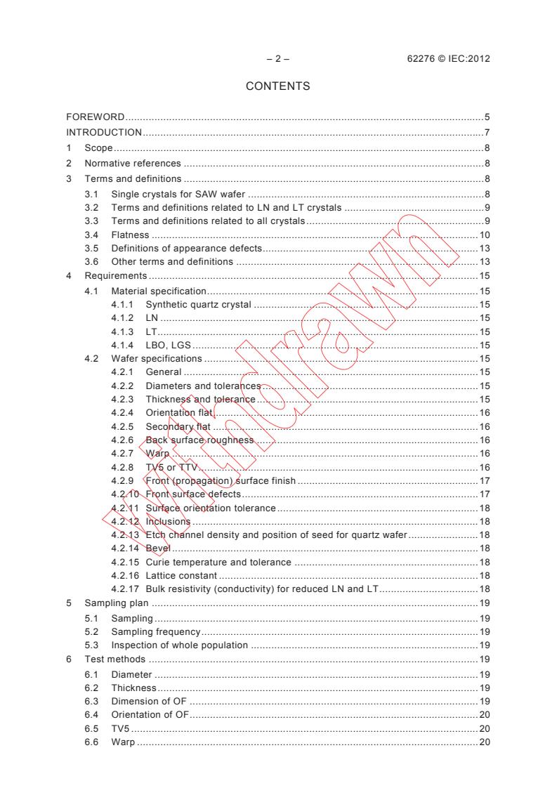 IEC 62276:2012 applies to the manufacture of synthetic quartz, lithium niobate (LN), lithium tantalate (LT), lithium tetraborate (LBO), and lanthanum gallium silicate (LGS) single crystal wafers intended for use as substrates in the manufacture of surface acoustic wave (SAW) filters and resonators. This edition includes the following significant technical changes with respect to the previous edition: