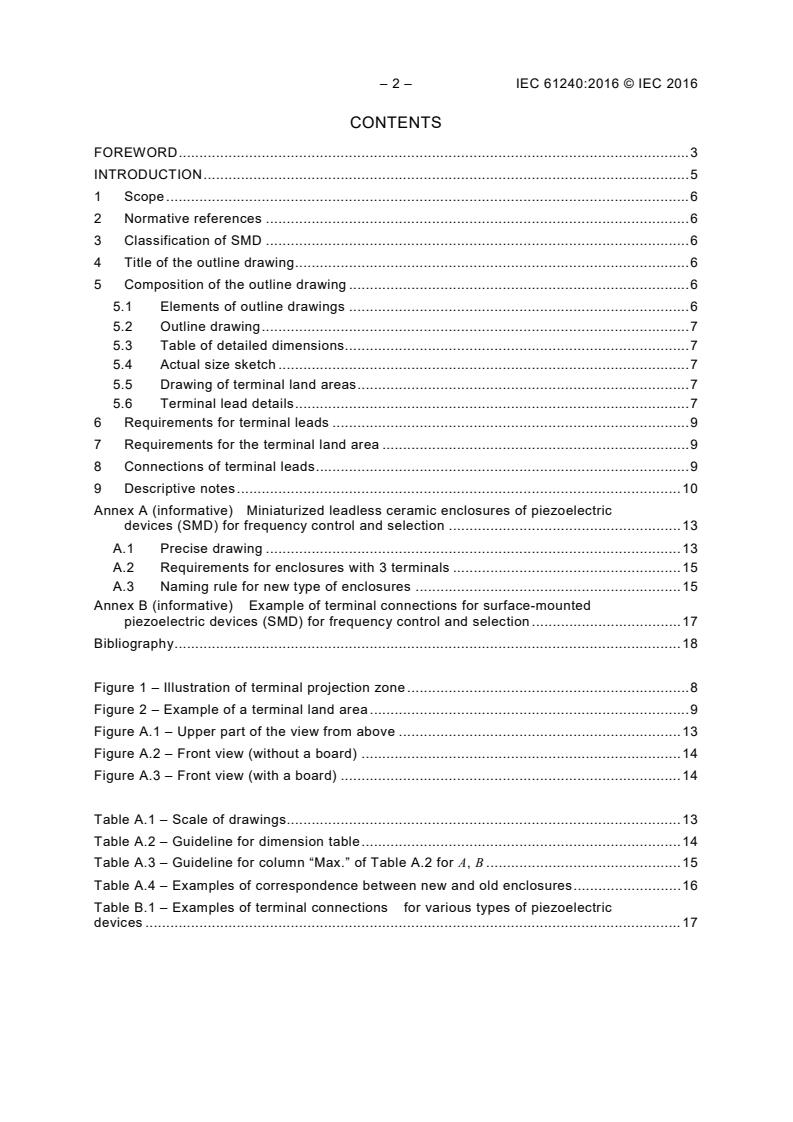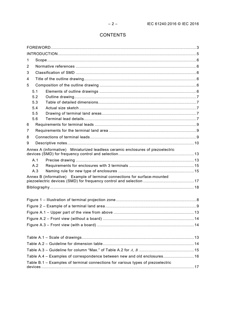 Keywords: IEC 61240:2016, piezoelectric devices, surface-mounted devices (SMD), outline drawings, frequency control, mechanical interchangeability, third-angle projection, terminal land area, leadless ceramic enclosures.