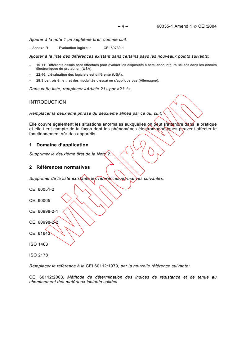 CEI 60335-1-Amd1-Ed.4 Amendement No. 1 Appareils électrodomestiques et analogues - Sécurité - Partie 1: Prescriptions générales