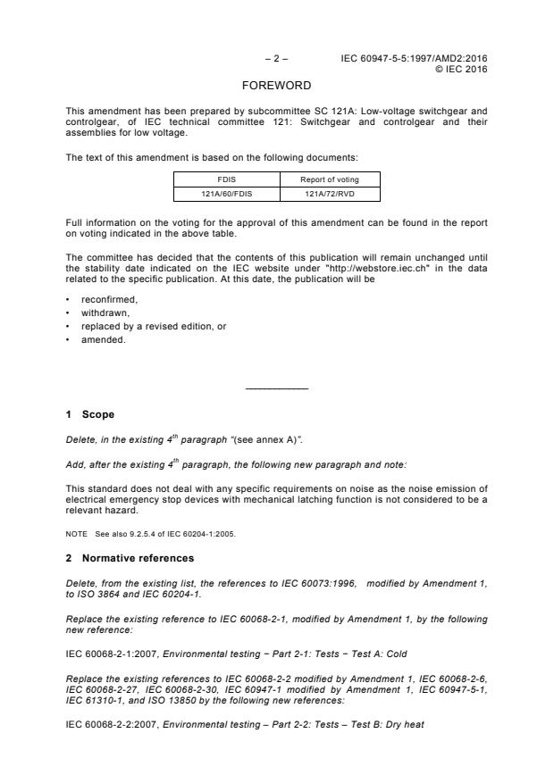Amendment 2 - Low-voltage switchgear and controlgear - Part 5-5: Control circuit devices and switching elements - Electrical emergency stop device with mechanical latching function