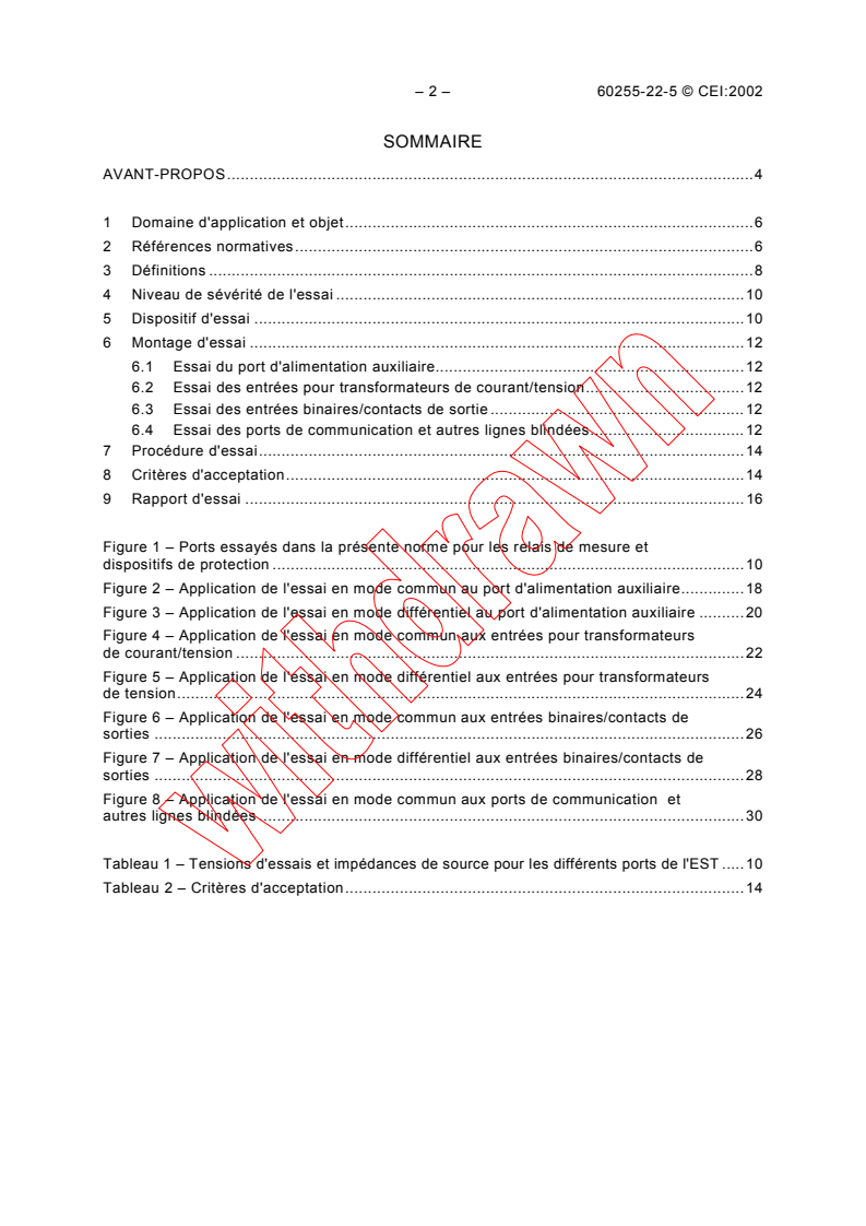IEC 60255-22-5:2002 is a standard published by the International Electrotechnical Commission (IEC). Its full title is "Electrical relays - Part 22-5: Electrical disturbance tests for measuring relays and protection equipment - Surge immunity test". This standard covers: Specifies the general requirements for surge tests for measuring relays and protection equipment for power system protection, including the control, monitoring and process interface equipment used with these systems. Is based on IEC 61000-4-5.