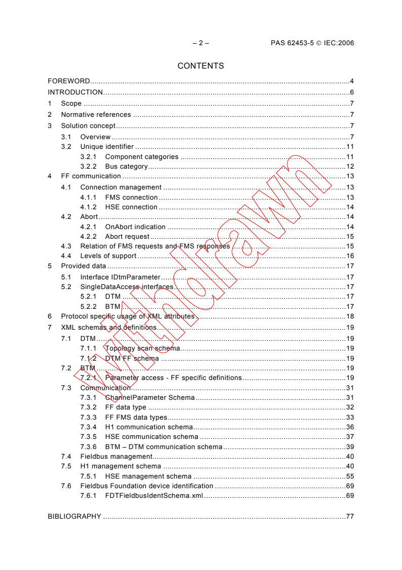 IEC PAS 62453-5:2006 is a technical specification published by the International Electrotechnical Commission (IEC). Its full title is "Field Device Tool (FDT) interface specification - Part 5: FOUNDATION FIELDBUS communication". This standard covers: provides information for integrating the FOUNDATION FIELDBUS (FF) protocol into the FDT interface specification (IEC 62453-1). describes communication schemas, protocol-specific extensions and the means for block (e.g. transducer, resource or function blocks) representation.