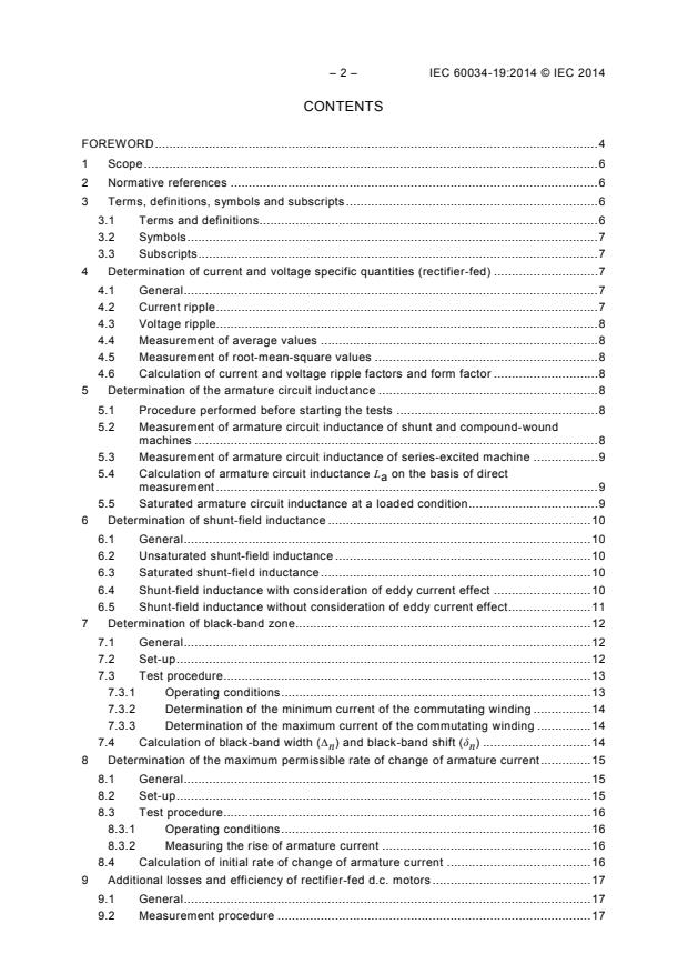 IEC 60034-19:2014 is a standard published by the International Electrotechnical Commission (IEC). Its full title is "Rotating electrical machines - Part 19: Specific test methods for d.c. machines on conventional and rectifier-fed supplies". This standard covers: IEC 60034-19:2014 applies to d.c. machines rated 1 kW and above operating on rectifier-fed power supplies, d.c. buses or other d.c. sources and provides standardized methods intended to determine characteristic quantities for conventional and rectifier-fed d.c. machines. These methods supplement the requirements in IEC 60034-1 and IEC 60034-2-1. The main changes with regard to the previous edition are as follows: - description of the procedure for black band testing has been detailed and clarified; - procedures for measurement of the magnetization curves under no-load and load conditions have been added.