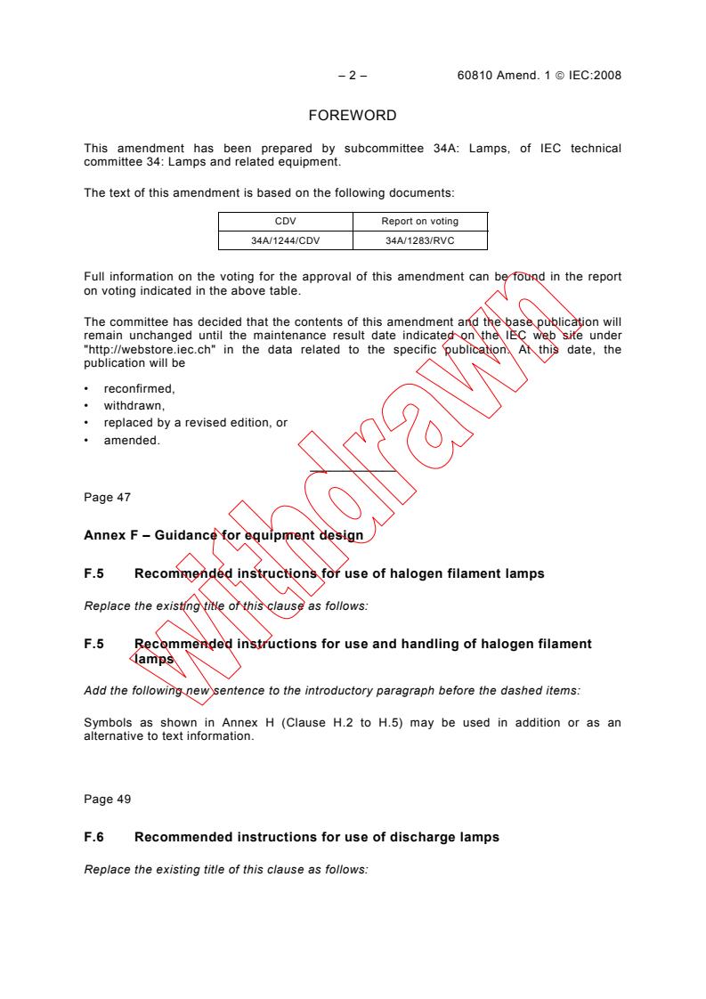 Keywords: IEC 60810 amendment, road vehicle lamps, lamp performance requirements, halogen filament lamp safety, discharge lamp instructions, automotive lighting standards, lamp handling symbols, IEC automotive lamp standard, vehicle lighting safety, IEC lamp amendment 2008.