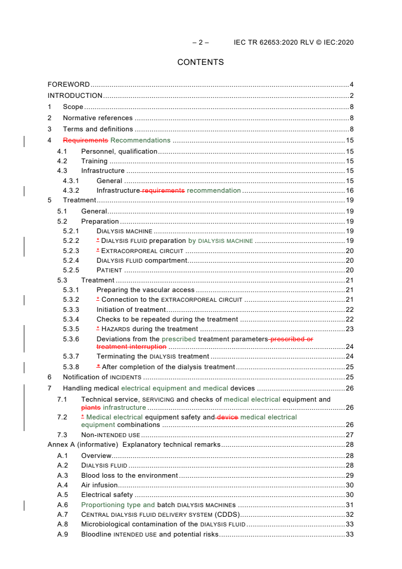 - Informative annexes: explanatory technical remarks on dialysis fluid, blood loss, air infusion, electrical safety, CDDS and microbiological contamination.