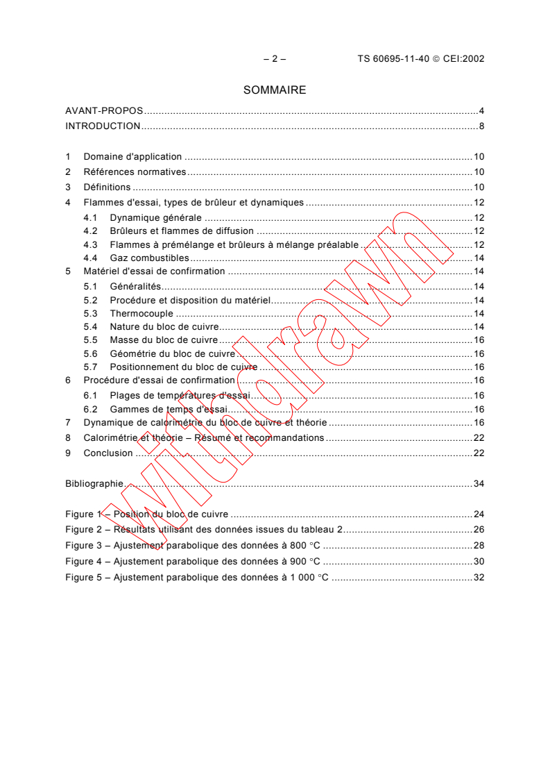 IEC TS 60695-11-40:2002 Présente les caractéristiques générales des flammes d'essai à petite échelle et des essais de confirmation associés fondés sur la calorimétrie du bloc de cuivre, et définit la modélisation théorique pour la dynamique associée. Un guide est présenté pour la sélection des paramètres critiques dans des conceptions d'essai de confirmation. Une théorie est présentée pour définir des paramètres de performance additionnels pour des essais de confirmation, permettant une caractérisation mathématique implicite précise des courbes d'échauffement des essais de confirmation.