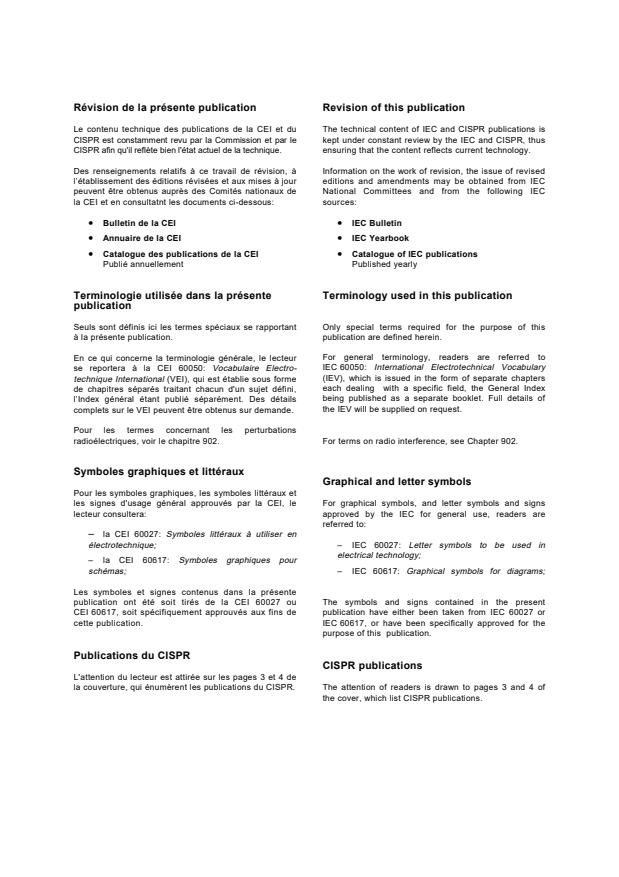 la couverture, qui énumèrent les publications du CISPR. The attention of readers is drawn to pages 3 and 4 of