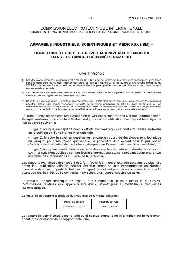 CISPR TR 28:1997 is a technical report published by the International Electrotechnical Commission (IEC) under the International Special Committee on Radio Interference (CISPR). This report provides guidelines for emission levels of industrial, scientific, and medical (ISM) equipment within the frequency bands designated by the International Telecommunication Union (ITU). It focuses primarily on electromagnetic emissions and their impact on radio communication environments.