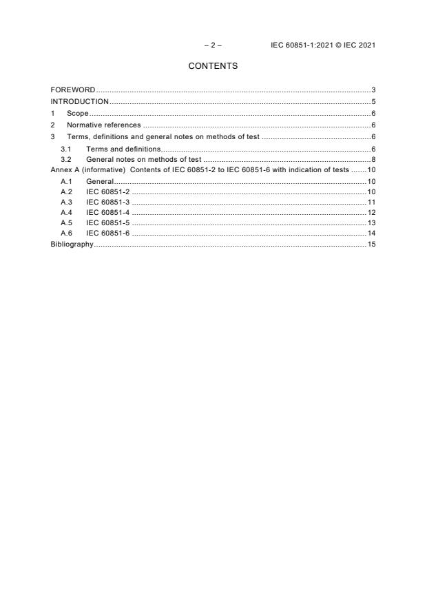 Annex A (informative) Contents of IEC 60851-2 to IEC 60851-6 with indication of tests . 10