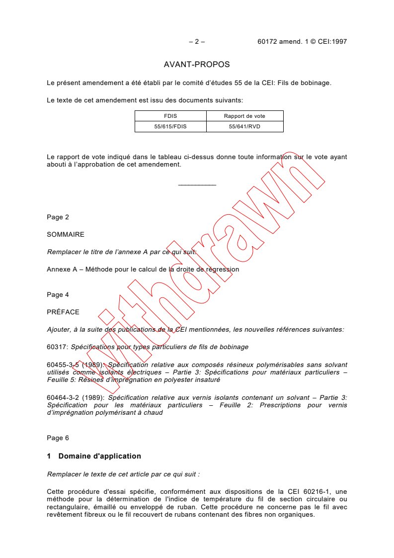 Le présent amendement a été établi par le comité d’études 55 de la CEI: Fils de bobinage.