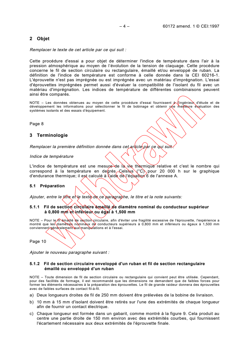 Amendment 1 - Test procedure for the determination of the temperature index of enamelled winding wires