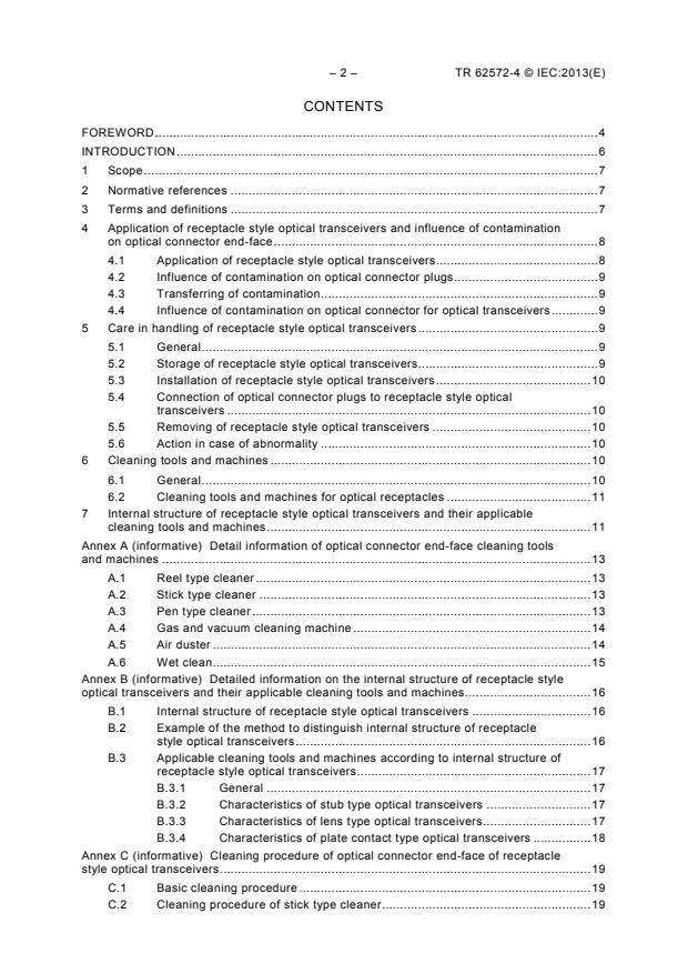 IEC TR 62572-4:2013 is an IEC Technical Report that provides practical guidelines for optical connector end-face cleaning methods specifically for receptacle style optical transceivers (e.g., pluggable SFP/XFP types). Published November 2013 (Edition 1.0), the report addresses handling, inspection and cleaning to protect optical performance and reliability in optical network systems. It is intended as a reference for creating operator and maintenance instruction manuals.