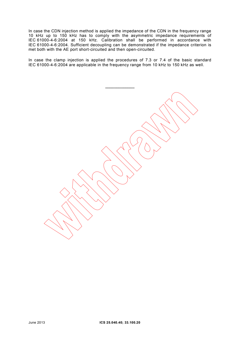 IEC 61000-4-6:2004 are applicable in the frequency range from 10 kHz to 150 kHz as well.