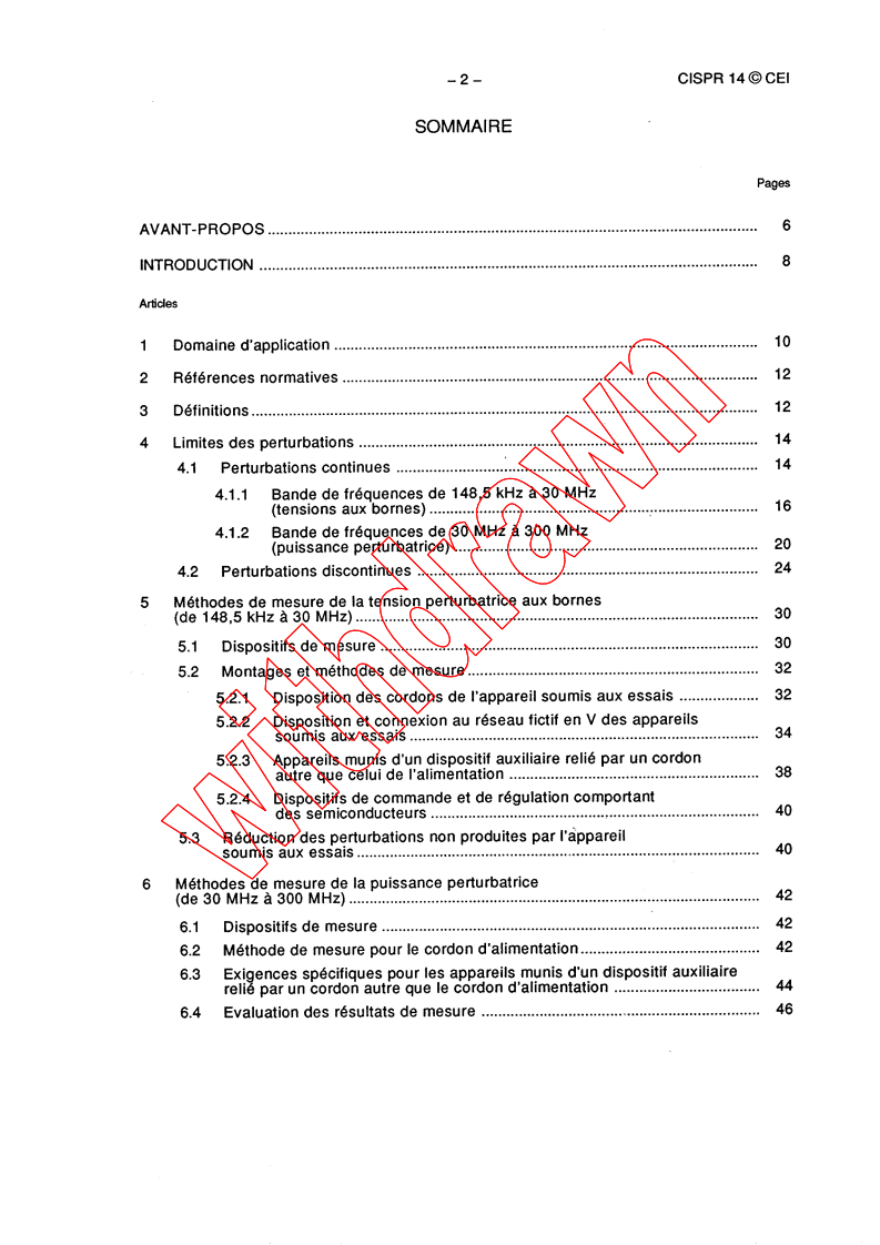 S'applique aux perturbations radioélectriques conduites et rayonnées, produites par les appareils dont les fonctions principales sont assurées par des moteurs et par des dispositifs de commutation ou des dispositifs de régulation, sauf si le rayonnement RF est produit volontairement, ou destiné à l'éclairage. Concerne des appareils tels que: les appareils électrodomestiques, les outils électriques, les dispositifs de commande et de régulation comportant des dispositifs à semiconducteurs, les appareils électromédicaux à moteur, les jouets électriques, les distributeurs automatiques, les projecteurs de cinéma ou de diapositives.