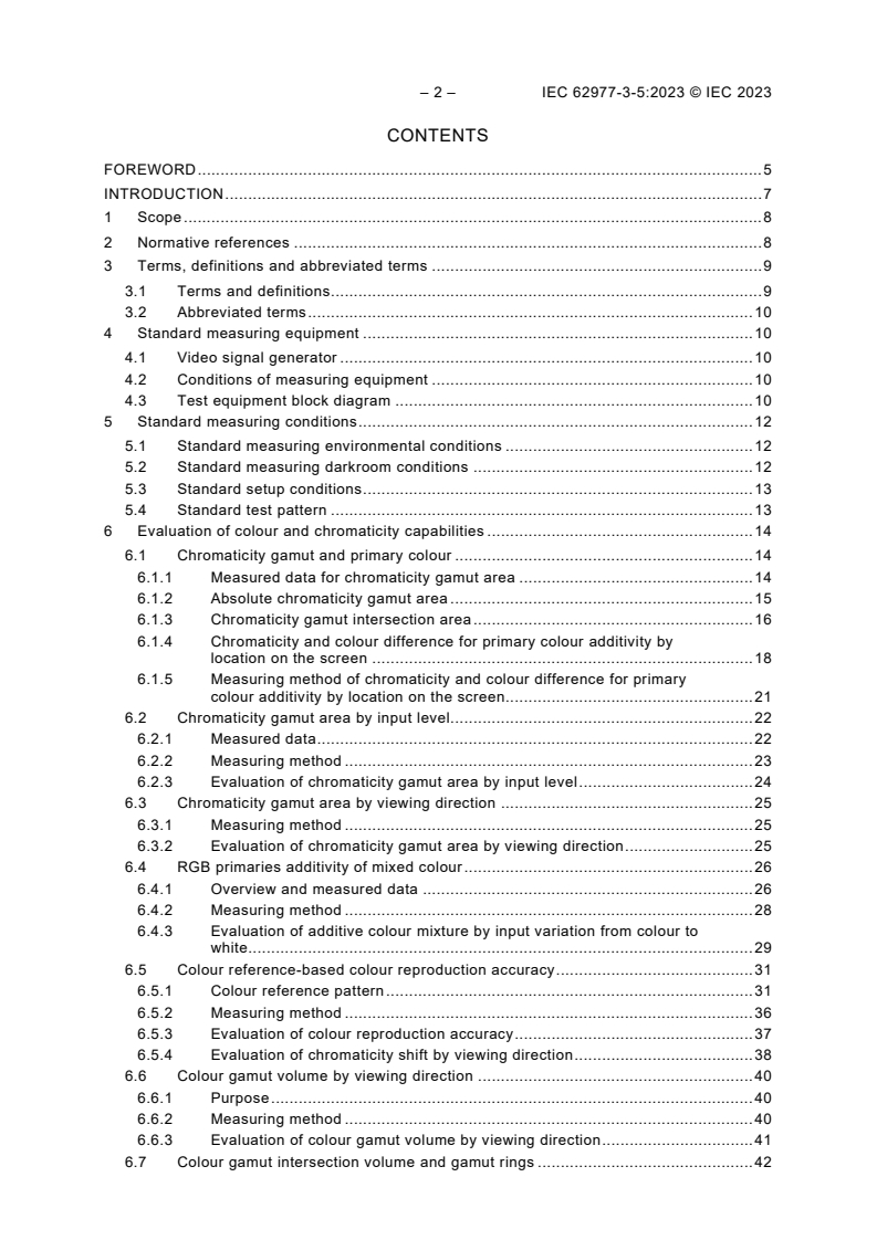 Keywords: IEC 62977‑3‑5:2023, electronic displays, colour capabilities, colour gamut volume, chromaticity gamut area, colour accuracy, display measurement standard.